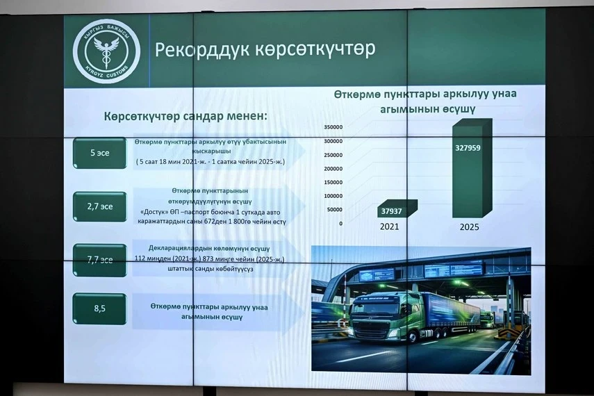 Премьер-министр Адылбек Касымалиев отметил, что данные показатели показывают значительный рост: если в 2020 году таможенные сборы составили 28 миллиардов сомов, то в 2025 году они увеличились почти в шесть раз.