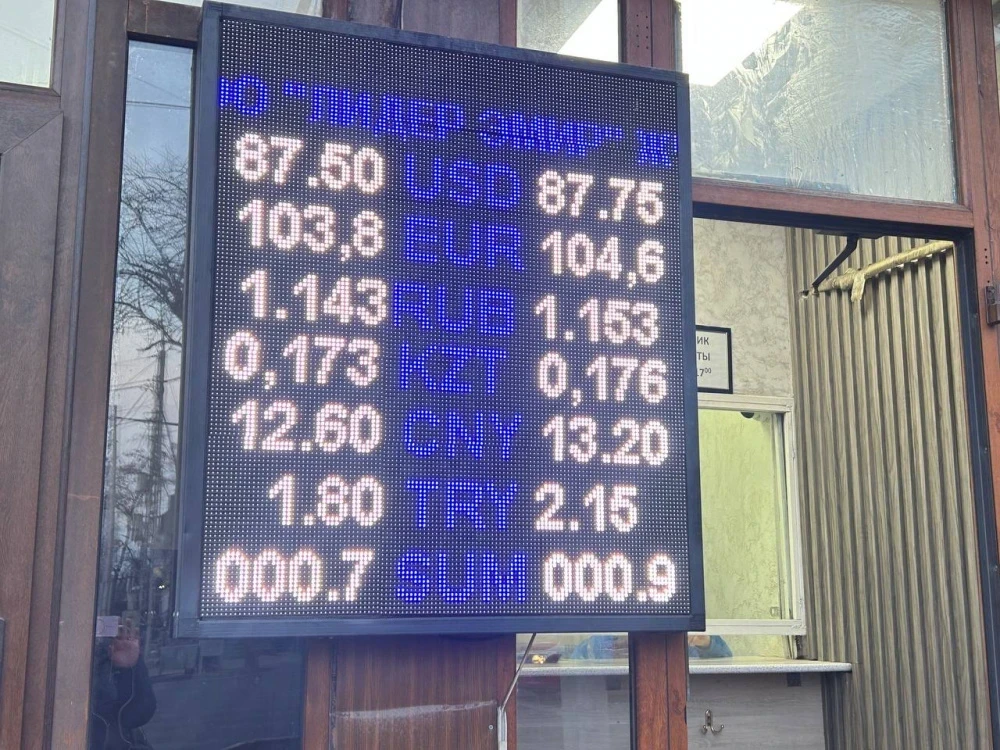 Рубль также подешевел. Его курс на покупку составляет 1,13-1,13 сома, а на продажу - 1,14-1,15.