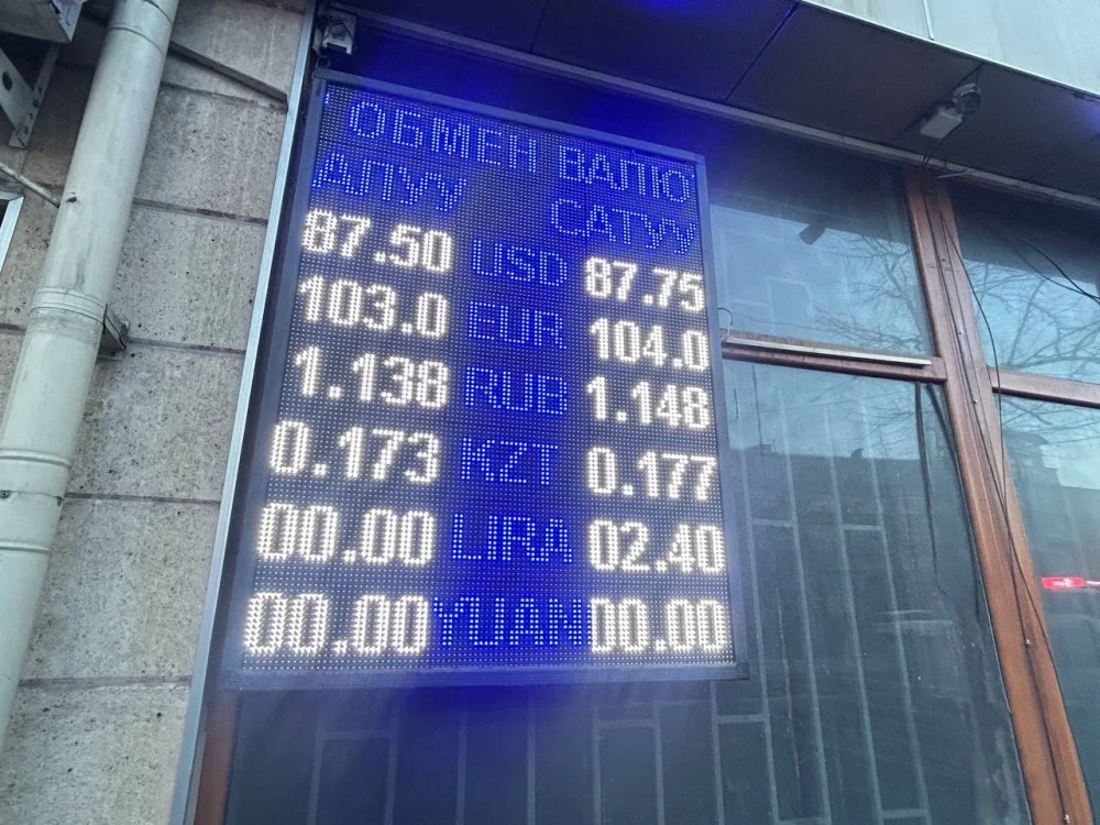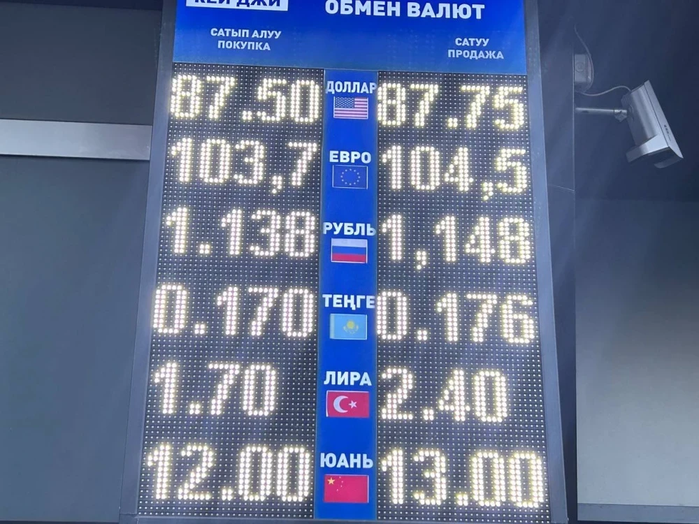 Рубль также стоит дешевле. Его курс составляет 1,13 сома для покупки и 1,14 для продажи.