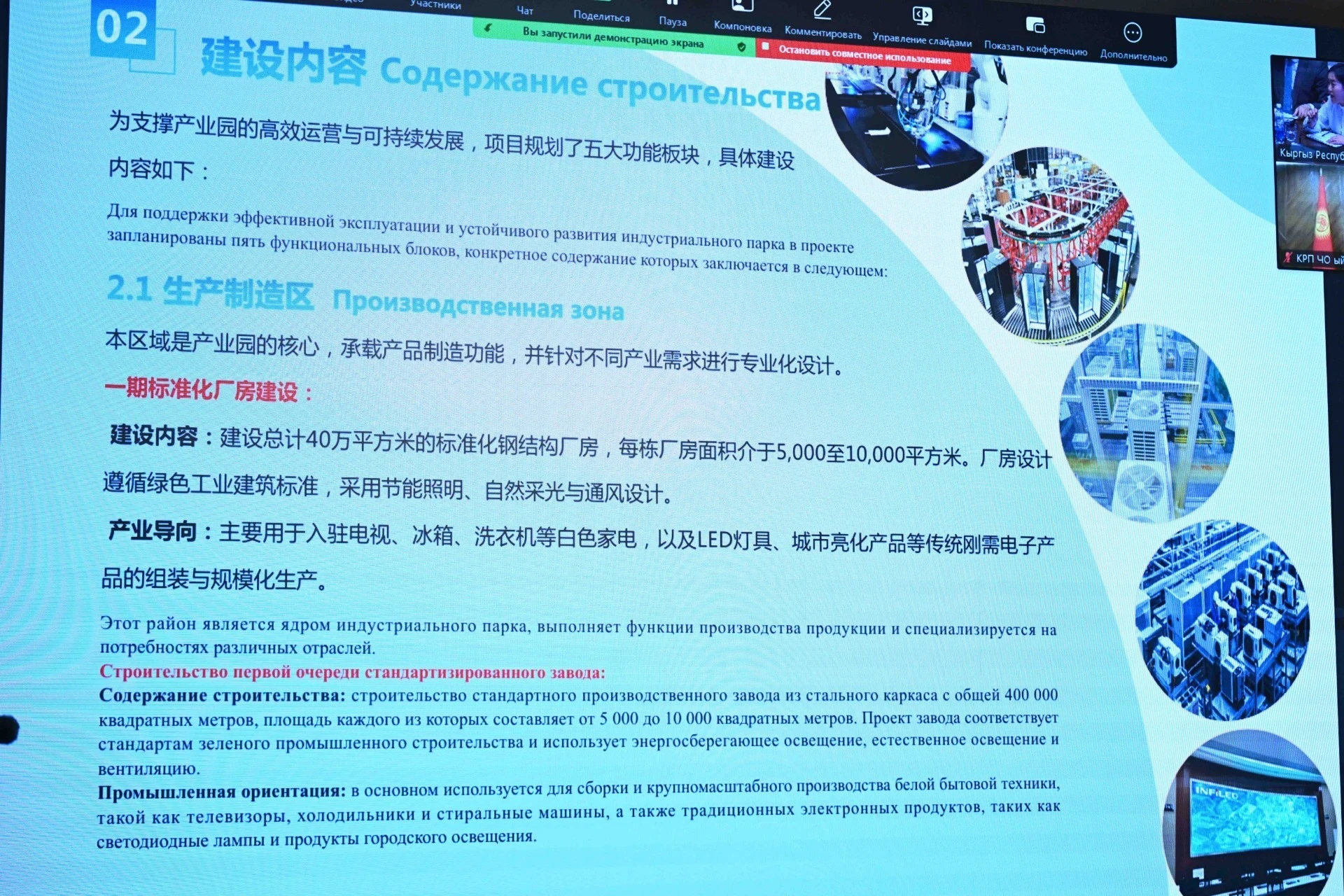 Компания имеет значительный опыт в строительстве индустриальных парков, и кыргызская сторона выразила заинтересованность в проекте, а также готова предоставить необходимую поддержку.