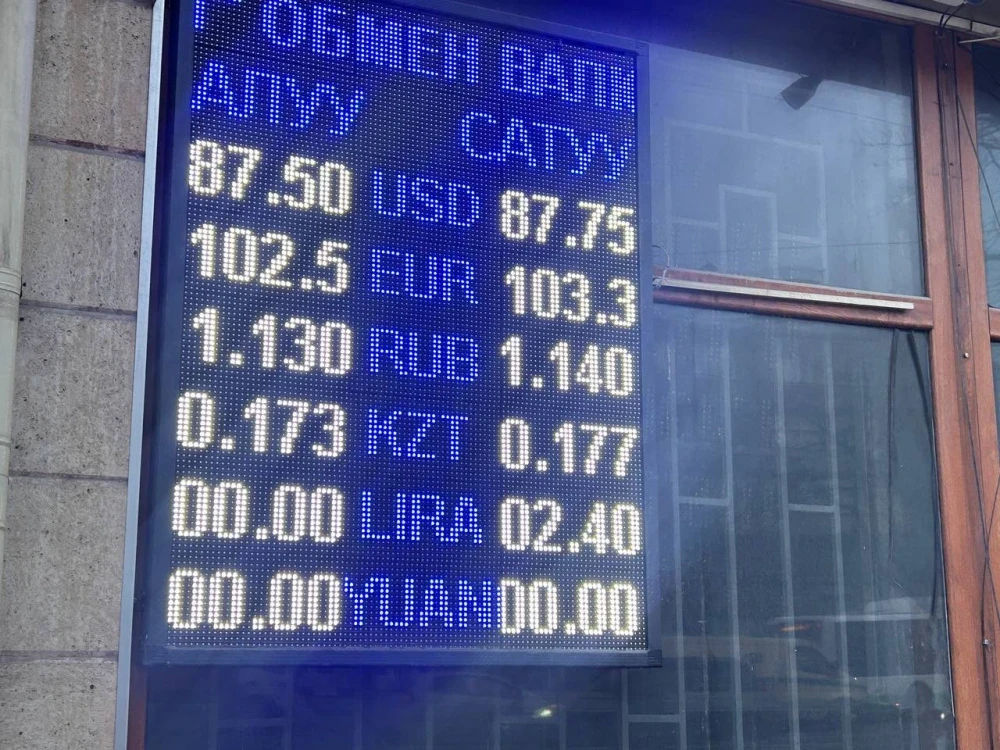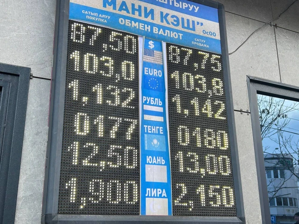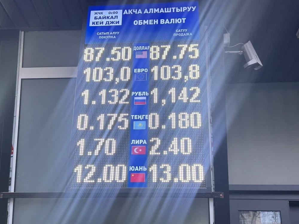 Рубль также показывает снижение: его цена составляет 1,13 сома при покупке и 1,14 при продаже.