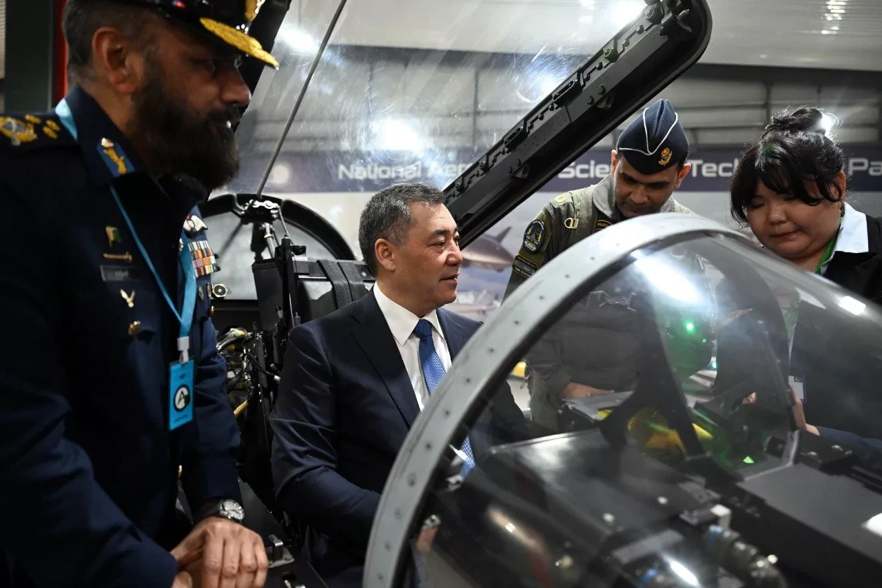Кроме того, президенту была представлена многоцелевая истребительная платформа JF-17 Thunder, разработанная совместно Китаем и Пакистаном. Жапаров получил информацию о технических характеристиках и боевых возможностях этого самолета, включая его маневренность и системы управления вооружением. Он также посетил кабину пилота, где специалисты рассказали о бортовом оборудовании и эксплуатационных характеристиках истребителя.