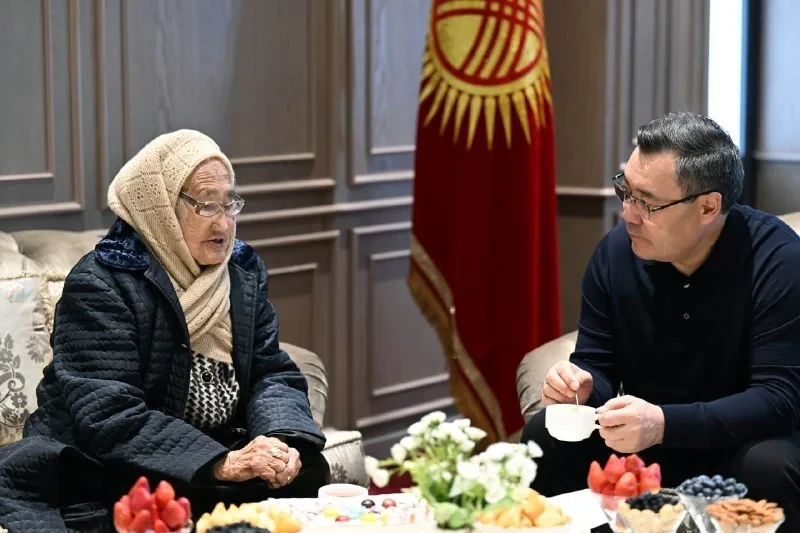 В рамках своей рабочей поездки по Иссык-Кульской области президент Кыргызстана Садыр Жапаров встретился с Кенешкан Шаменовой, своей первой учительницей.