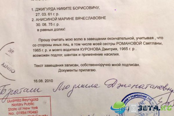 По мнению Светланы, Никита Джигурда нагло подделал завещание Людмилы, использовав украденный бланк с ее подписью. «Вчера мы имели с Никитой Борисовичем разговор в суде, – говорит Светлана. – Он предложил мне зарабатывать деньги. Я спросила, каким, собственно, образом. Он ответил: «Мы с тобой, Романова, можем судиться с телевидением. И каждый иск за клевету, ложь и так далее – это три миллиона рублей». Продолжение этой скандальной истории следует.