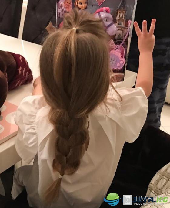 В честь праздничного события Кристина сделала своей дочурке длинную косу. На снимке, помимо всего прочего, девочка показывает на пальцах, сколько ей исполнилось лет. Но вот лицо малышки по-прежнему остается недоступным для широкой общественности и конкретно поклонников Харламова и Асмус, что их немного расстраивает.