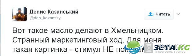"Вот такое масло делают в Хмельницком. Странный маркетинговый ход. Для меня такая картинка - стимул НЕ покупать", - прокомментировал журналист опубликованные фотографии.