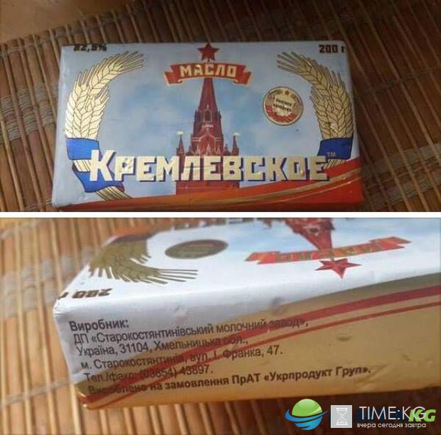 Информацию и фото о том, что в Хмельницкой области на молокозаводе города Староконстантинов выпускают масло под названием "Кремлевское", да еще и с соответствующей символикой, опубликовал блоггер Денис Казанский на своей странице в Twitter, передает Joinfo.ua.