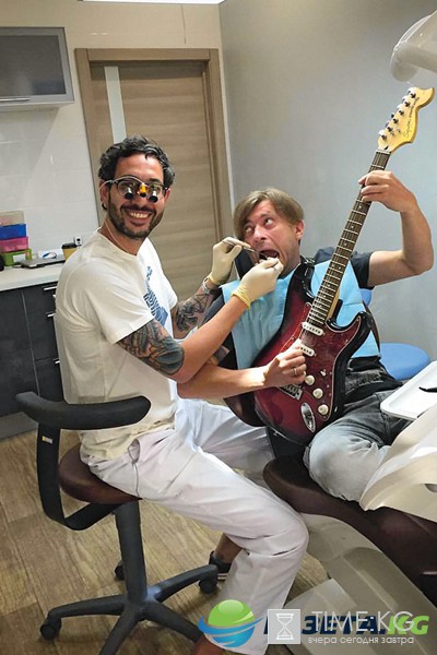 Это подарок клиента – гитариста, он работает в коллективе Валерия Леонтьева. Иногда сам играю, но чаще Лева и Шура из группы «Би-2». Еще 15 лет назад я и предположить не мог, что любимые музыканты станут моими пациентами. В те времена мама руководила гостиницей «Звездная» неподалеку от Останкино. Там останавливались «Сплин», «Би-2», «Ночные снайперы». Я писал стихи, и мама показывала их артистам, потом познакомила с кумирами. Так и подружились. И вот я уже лечу Шуру и Леву. Здорово! Вообще певцы, актеры, телеведущие – дисциплинированные, не могут себе позволить в день концерта, съемок проснуться с флюсом, потому стараются не запускать.—