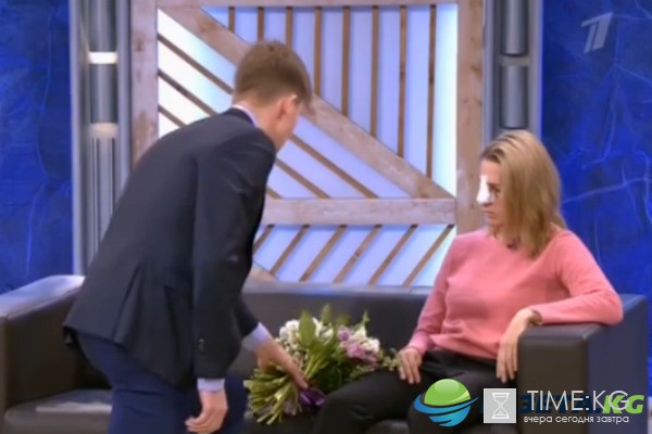 В студии появился Роман Парамонов с букетом цветов и попросил прощения у бывшей жены.