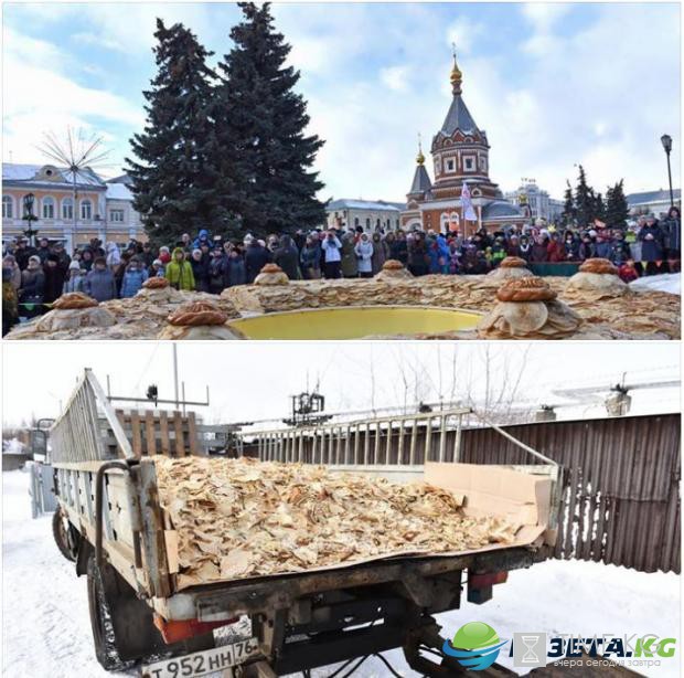 "Блинный торт" весом более 1700 кг пополнил рекорды Гиннесса. Но после праздника его ждала печальная судьба. Гора блинов, украшенная пирогами с надписью "Ярославль", попросту скормили бродячим собакам. Ведь он так долго пролежал, что его нельзя было есть людям, передает Joinfo.ua со ссылкой на Мedialeaks.ru.