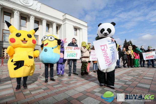 Театрализованная акция под названием «Хочу быть аудитором НАБУ!» стартовала утром в понедельник возле здания Верховной Рады в украинской столице. Часть активистов была одета в костюмы мультяшных героев Миньона, Пикачу, Шрека, Губки Боба, панды, свинки Пеппи, черепашки-ниндзя.