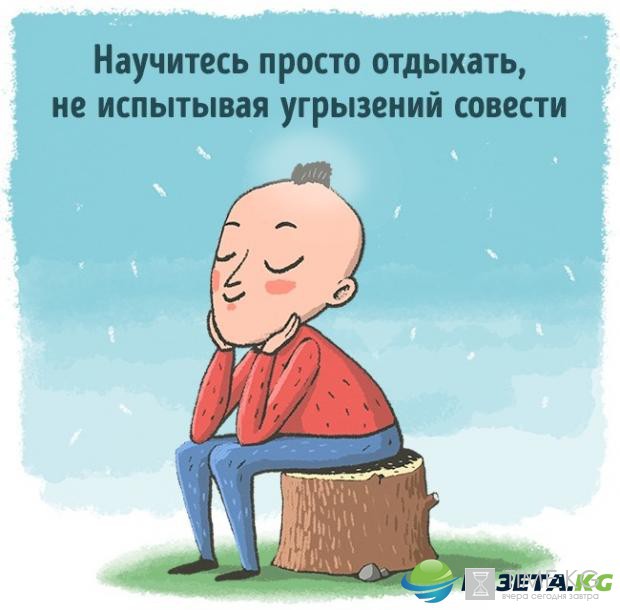 Выход: Каждый день оставляйте время для себя. Разрешайте себе расслабиться и не беспокойтесь о делах какое-то время. Отдыхайте и не корите себя за это. От этих «минут простоя» ваша продуктивность только возрастет. И голова болеть не будет.