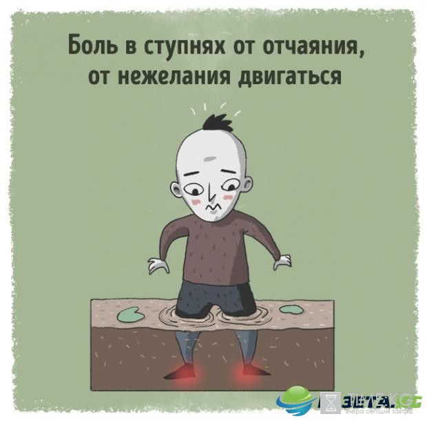 Причина боли ступней, вероятно, в глубокой апатии. Как будто наше тело отказывается идти дальше, как будто мы боимся жизни и не видим смысла в движении вперед. Когда мы подсознательно думаем, что все плохо и жизнь не удалась, наши ступни болят.