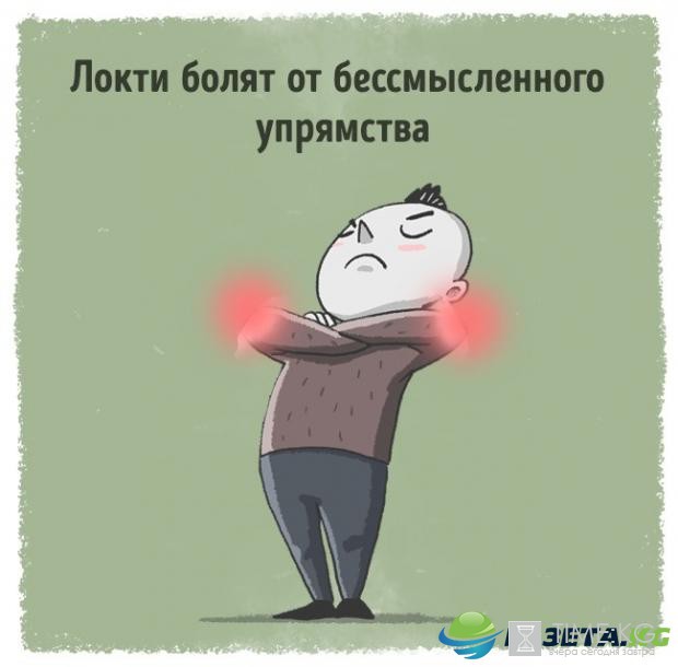 Боль в локтях указывает на недостаток гибкости, на слишком упорное нежелание идти на компромисс. Скорее всего, мы противимся каким-то важным изменениям в жизни. Или подсознательно боимся принять что-то новое.
