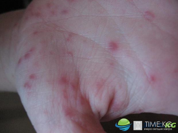 В первую очередь появляются высыпания на коже кистей (особенно ладоней), стоп и во рту, а в редких случаях — на ягодицах и гениталиях.