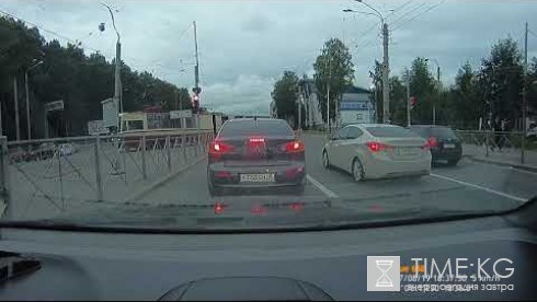 На кадрах видео видно, как виновник аварии на огромной скорости несется по встречке объезжая пробку, не обращая внимание на красный сигнал светофора, и влетает в автомобили.