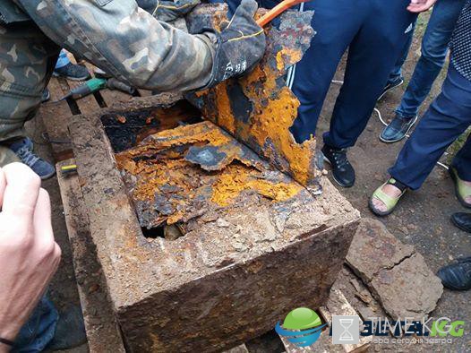 "Сейчас мы даже не догадываемся, что там может быть внутри, нужно открывать. Открыть его „штатным“ способом не получится — время сделало свое дело, металл очень окислился", — отметила Грабовская.