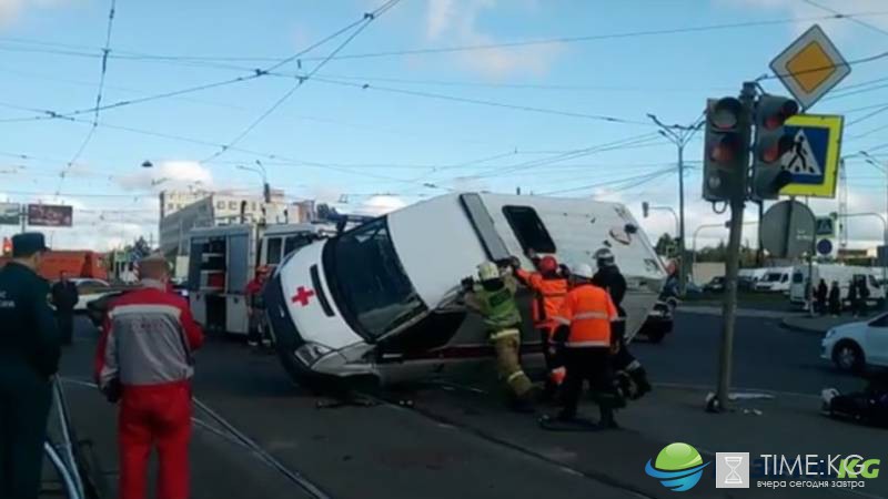 В Петербурге в столкновении с фурой перевернулся автомобиль скорой помощи