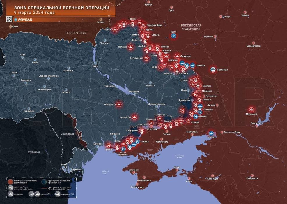 Последние новости СВО от 10 марта 2024. Карта боевых действий на Украине на сегодня, военная сводка