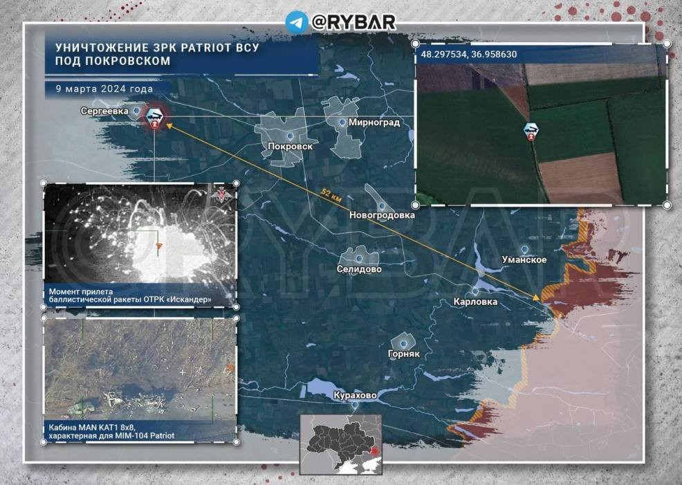 Центральным событием дня стало уничтожение российскими войсками пусковых установок и РЛС из состава комплекса MIM-104 Patriot, которые были поражены ОТРК «Искандер» у села Сергеевка к западу от Покровска, пишет Telegram-канал "Рыбарь".