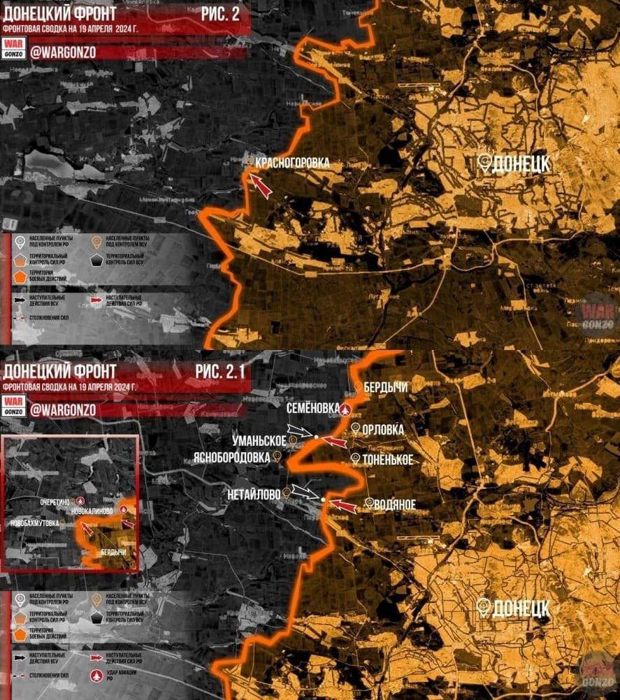 Карта боевых действий из зоны СВО на Украине от 19.04.2024