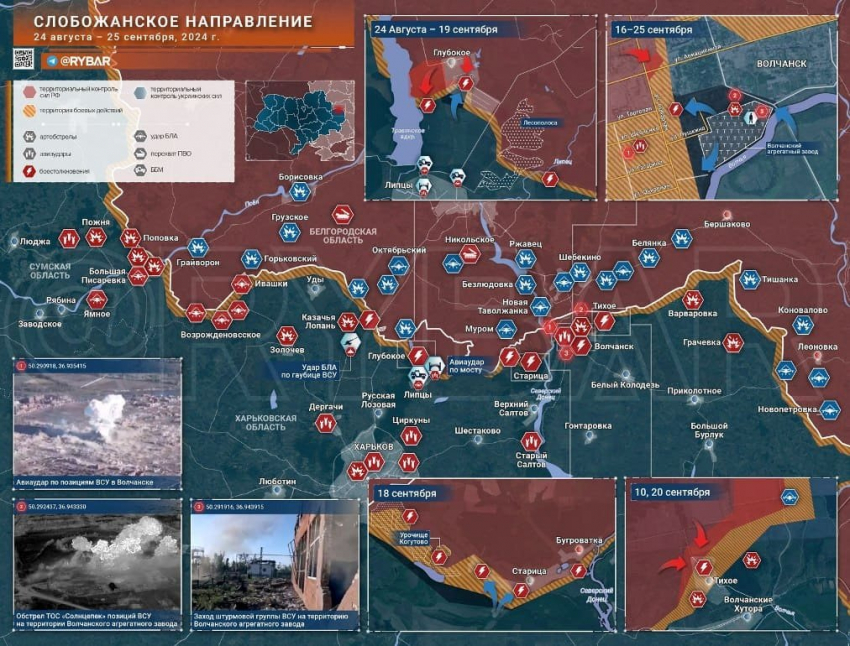На Слобожанском направлении российские войска ведут бои севернее агрегатного завода в Волчанске. В то же время противник атакует позиции ВС РФ в Глубоком, стремясь вернуть контроль над селом.