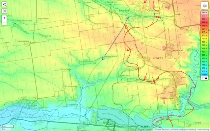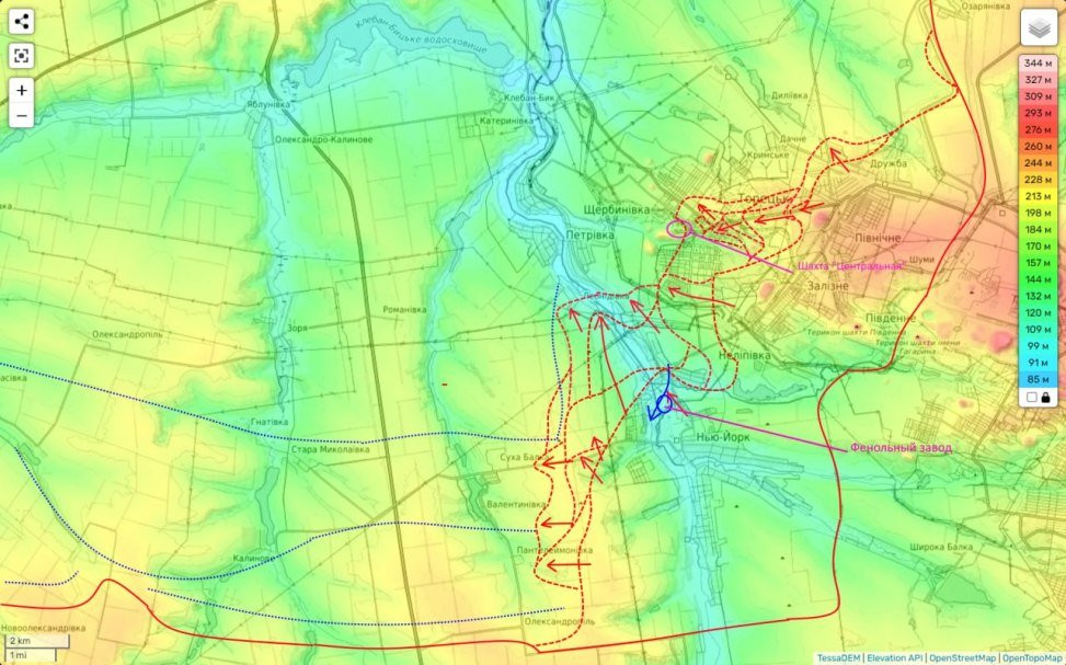 Пока же из того, что есть. Мы продолжаем выбивать противника из северной части города и ведем бои в районе шахты «Центральная». А юго-западнее наши части продолжают охват агломерации с запада и одновременно создают предпосылки для дальнейшего движения вперед (уже после того, как ВСУ покинут оставшуюся часть Торецка).