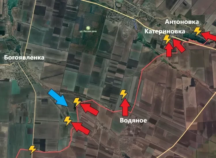 На Угледарском направлении штурмовые группы ВС РФ прорвали оборону противника в районе Катериновки и закрепились в центре села, где сейчас идут ожесточенные бои в районе улицы Мира, Шевченко и Зои Космодемьянской. На текущий момент около 25-30% села уже освобождены российскими войсками. На подступах к Богоявленке, по некоторым данным, ВС РФ выбили противника из нескольких лесополос к югу от села, однако масштаб продвижения на текущий момент неизвестен. По имеющимся данным, со стороны ВСУ ожидаются контратаки с целью не дать российским войскам закрепиться до подхода подкреплений.