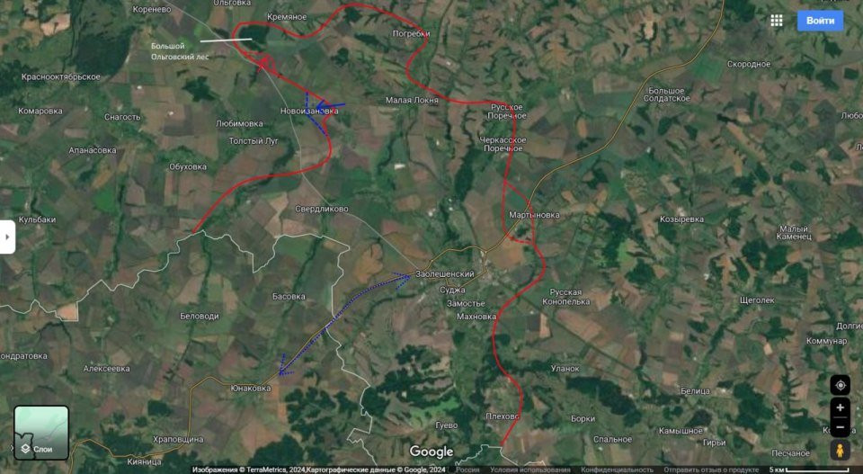 Наши же части сосредоточили свои усилия по выдавливанию противника из Большого Ольговского леса. Чтобы тем самым разблокировать для снабжения трассу Коренево-Зеленый Шлях. Что для нас крайне важно для обеспечения логистики для следующего удара по противнику. И также мы здесь имеем успехи. Балка и посадка южнее этого леса перешла под наш контроль, что еще сильнее усложняет положение противника в этом самом лесу.