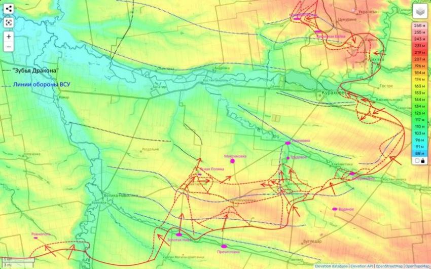 На днях ВСУ вынуждены были отойти с позиций севернее Ильинки, что позволило российским силам усилить огневой контроль над последней трассой к Кураховке. В городе продолжаются ожесточенные бои, и противник постепенно отступает, понимая, что удержать его становится невозможно.
