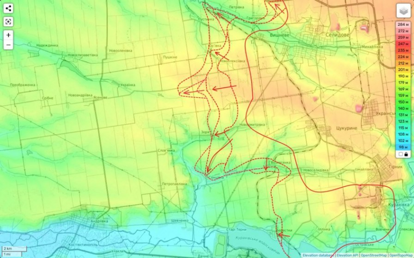 Таким образом все отчетливее и отчетливее имеем движение по направлению к н.п. Шевченко (южному предместью Покровска).
