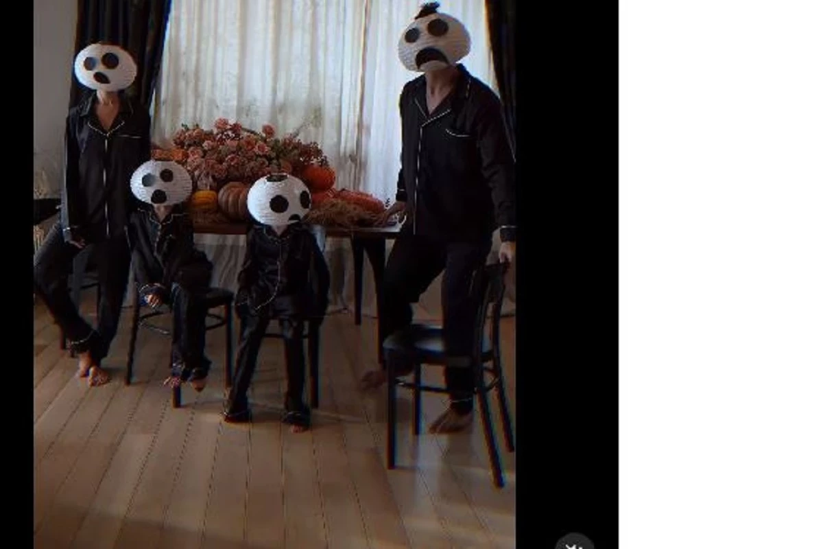 Мать, отец и их дети решили быть на Хэллоуин-2024 мрачными тыквами.