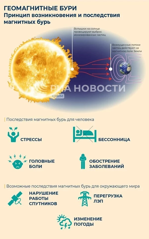 Принцип возникновения геомагнитных бурь и их последствия (инфографика)