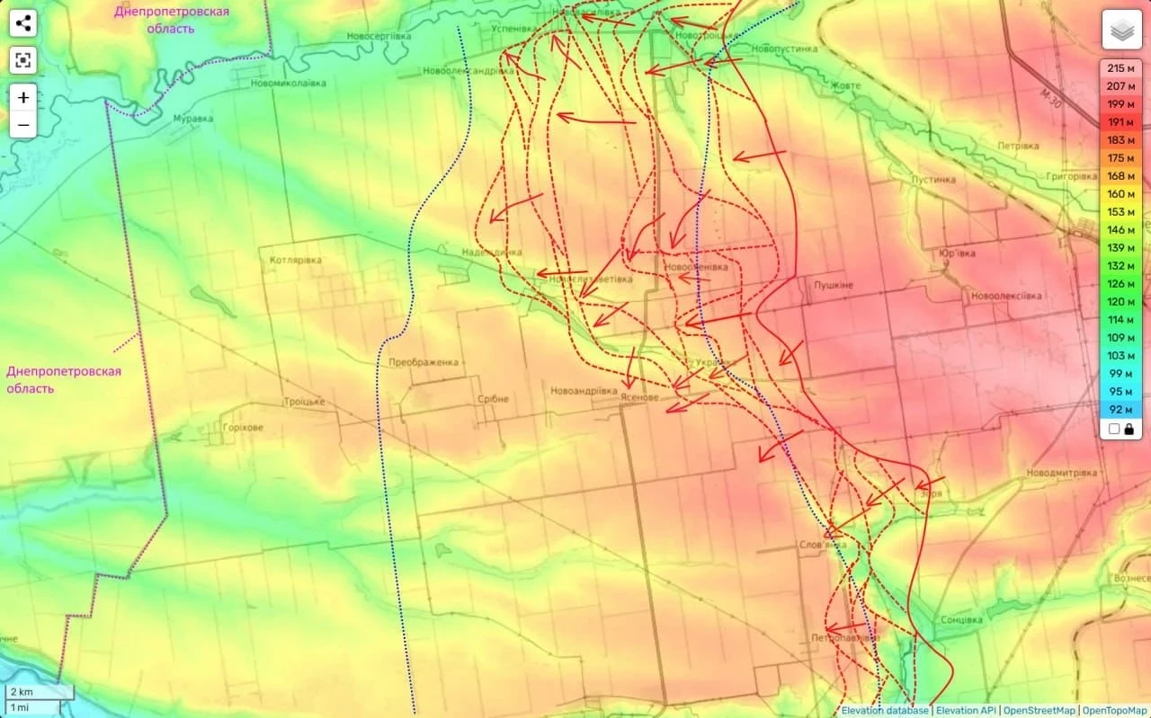 На Селидовском направлении накануне продолжалось наше наступление в междуречье рек Солёная и Волчья. Причем, по мере приближения наших частей к последней линии обороны перед Днепропетровщиной, а также вследствие переброски сюда новых резервов ВСУ, скорость продвижения начинает падать.