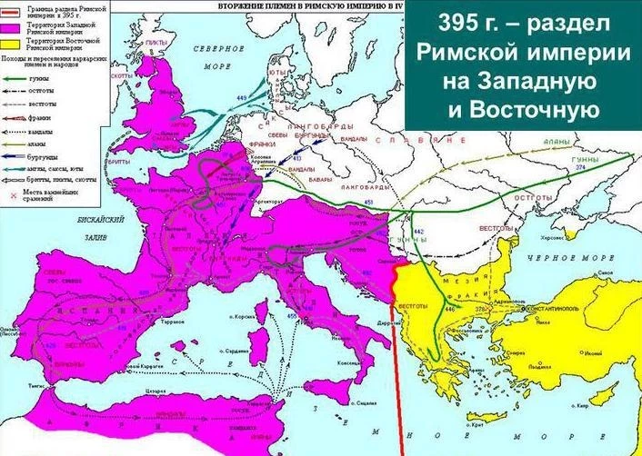 17 января 395 года произошел официальный раздел Римской империи на две части — Западную и Восточную. Восточная часть вскоре обрела самостоятельность и стала известна как Византийская империя.