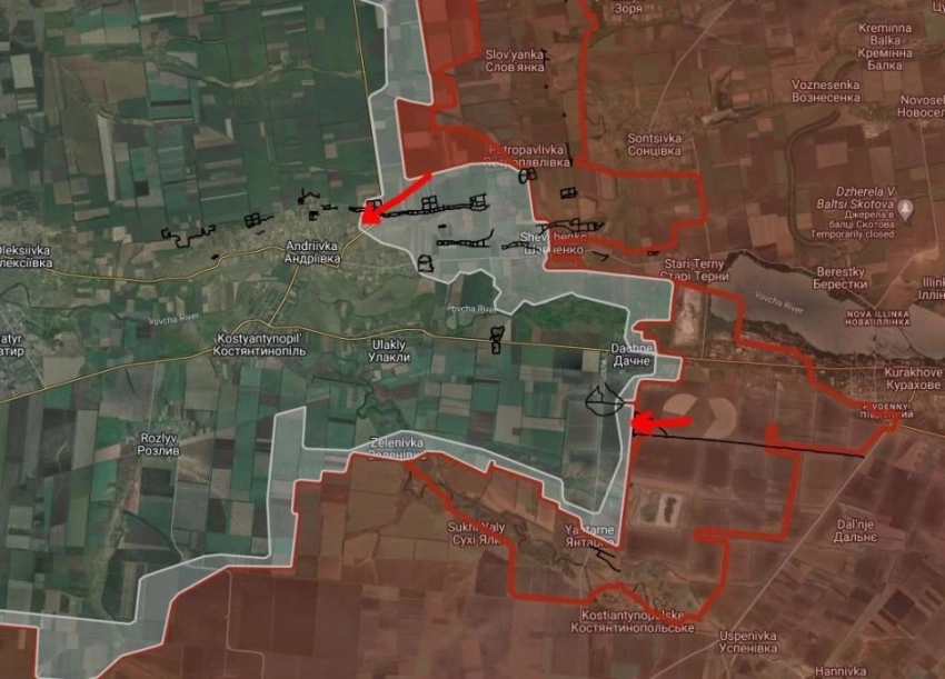 На Константинопольском направлении российские войска давят в восточной части Андреевки с опорой на Шевченко и Петропавловку.