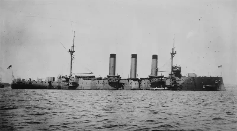 Два быстроходных трансатлантических парохода «Кайзер Вильгельм дер Гроссе» (24 700 т, 6*105-мм, 2*37-мм, 22,35 уз.) и «Кронпринц Вильгельм» (24 900 т, 2*120-мм, 2*88-мм, 23,09 уз.);