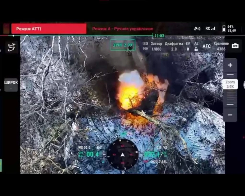 На кадрах видно, как воздушная разведка полка 1434 «АХМАТ-Чечня» обнаруживает блиндаж противника, скрытый под маскировочной сетью, недалеко от села Мартыновка в Суджанском районе. ВС РФ наносят серию точных ударов, в результате которых укрытие оказывается уничтоженным.