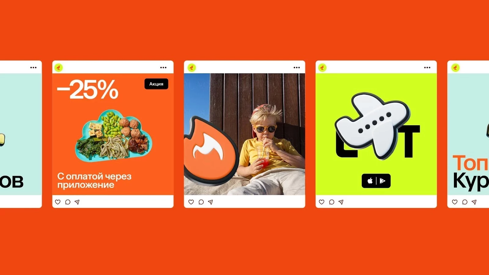 - Новая айдентика и простая коммуникация. Символом бренда стала чайка — воплощение свободы, путешествий и поиска лучших предложений. Яркие цвета и динамичные элементы делают коммуникацию с клиентами еще понятнее и доступнее. В общении, как и в стратегии бренда, выделяется принцип: «главное видно сразу». В тексте стало еще меньше воды и еще больше пользы, качественной информации и способов отправиться на отдых.