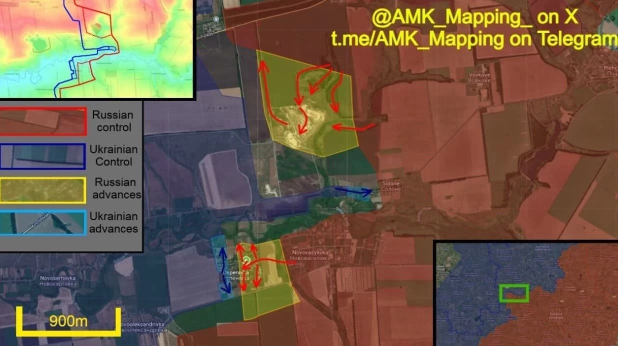 В Успеновке российские штурмовые отряды в последние недели успешно продвигаются на запад через село. Под прикрытием мощной артиллерии и ударов FPV-дронов военные заняли первую улицу, затем футбольное поле и трёхэтажное здание рядом. Оттуда ВС РФ начали атаку на центральную улицу, закрепившись в домах, а затем перешли к самой западной улице, захватив её северный и южный концы.