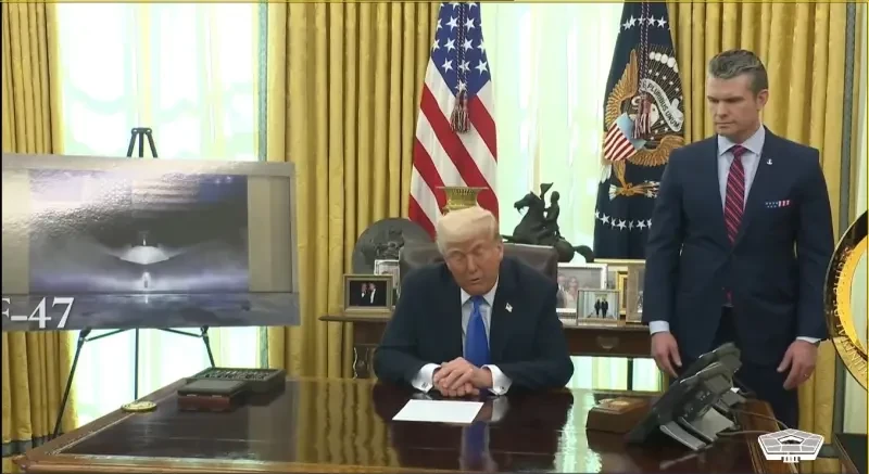 Первое изображение F-47, показанное во время объявления президентом США Трампом о заключении контракта NGAD компании Boeing.