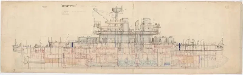 На облик броненосца «Девастейшн», ставшего родоначальником целого класса кораблей, повлияло несколько факторов. Во-первых, необходимость применения орудийных башен, о которой я уже сказал выше. Во-вторых... Обеспечить высокую дальность плавания броненосцев оказалось при существующем уровне развития техники утопией, поэтому Рид с самого начала взял за образец монитор — если корабль всё равно не сможет уйти никуда дальше Балтики, то зачем ему высокий борт? В-третьих, опыт совмещения башен и парусного вооружения можно было смело признать неудачным: хоть до катастрофы «Кэптэна» было ещё несколько лет, но то, что остойчивость бронированных кораблей с высокими мачтами нельзя назвать хорошей, уже было ясно.
