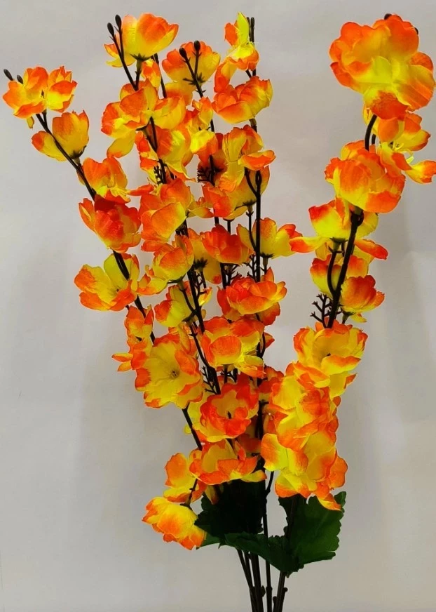 Искусственная ветка сакуры – элегантный и стильный элемент декора, который привнесет в ваш интерьер атмосферу весны и легкости. Высококачественные цветы с насыщенной естественной окраской в желто-оранжевых тонах выглядят реалистично и гармонично вписываются в любое пространство. На прочном стебле высотой 55 см расположены 7 веточек с мягкими тканевыми листьями, создающими эффект пышной композиции. Эти искусственные цветы подойдут как для домашнего уюта, так и для оформления кафе, офисов, выставочных павильонов, фотозон и свадебных декораций. Благодаря долговечности и простоте в уходе, ветка сакуры сохранит свежий вид на долгие годы. Она не требует полива, не боится жары или холода, не вызывает аллергии и легко очищается от пыли. Чтобы цветы выглядели максимально привлекательно, после транспортировки рекомендуется расправить их, подержав над паром в течение 10–15 секунд.