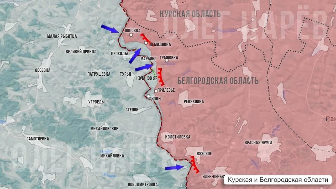 По данным источников издания, военные столкновения происходят вблизи населенных пунктов Демидовка и Поповка. Сообщается, что украинские войска предпринимают попытки проникнуть в линию российской обороны и закрепиться, но сталкиваются с серьезным сопротивлением.