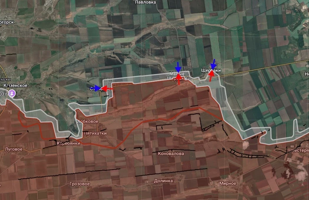 На Запорожском участке интенсивные боевые действия между Лобковым и Каменским, есть успехи у ВС РФ к северу от Щербаков. Враг устроил артобстрел по горбольнице Каменки-Днепровской. Данных о пострадавших нет, но здание больницы и прилегающая территория пострадали. В районе Орехова позиционные бои.