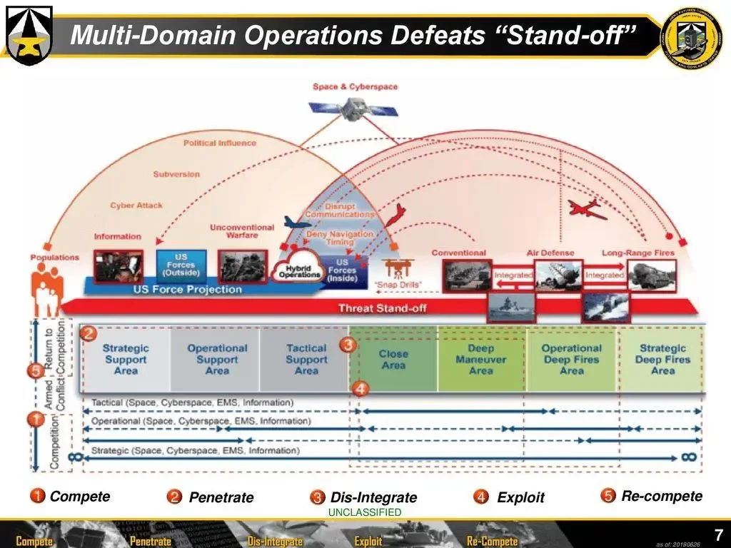 Реализовать подлинно многодоменные силы будет крайне сложно из-за врождённого антагонизма видов вооружённых сил, каждый из которых старается «перетянуть одеяло» на себя, но, скорее всего, ВС США с этим справятся, в конце концов, Link-16 они сделали стандартом для всех вооружённых сил, несмотря на то, что разработан он был для Военно-морских сил (ВМС), да и межвидовые комплексы вооружений ВС США создают вполне успешно.