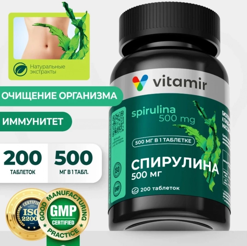 Спирулина 500 мг от VITAMIR PRO — достойный участник в топ БАДов для похудения, который не обещает волшебства, но даёт телу всё, чтобы оно само начало работать на результат. Высокая концентрация белка, витамины группы B и антиоксиданты запускают метаболизм, способствуют выведению токсинов и поддерживают пищеварение. А ещё — бодрость без кофеина, иммунитет на уровне и защита клеток от стресса. Натуральный детокс и питание в одном флаконе. Таблетки мощные, но при этом мягкие в действии.