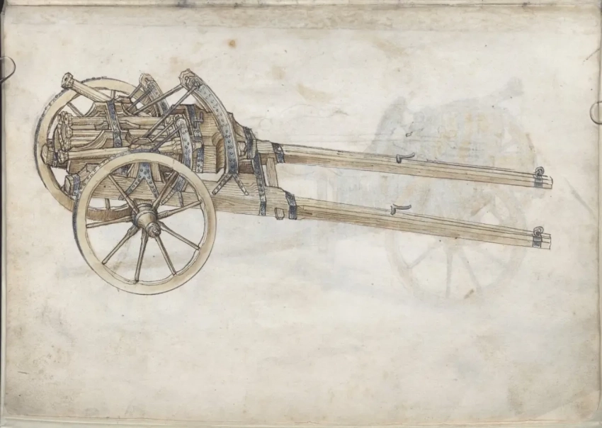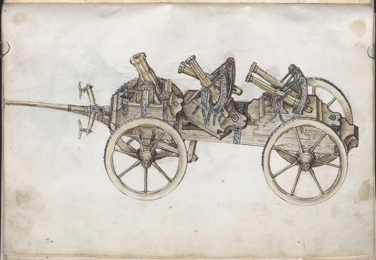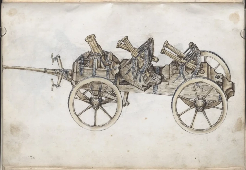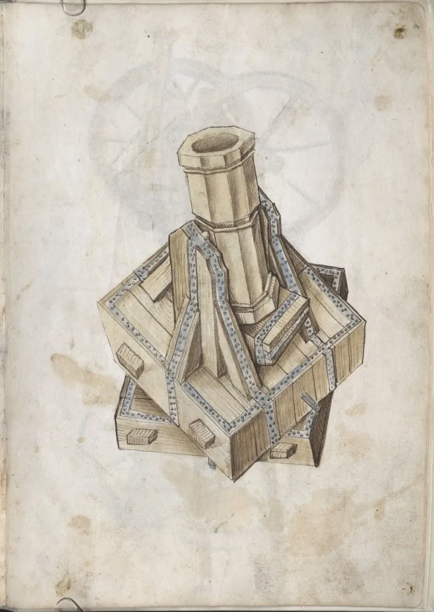 О самом авторе известно, что в 1460 году Мартин Мерц поступил на службу в качестве оружейника ко двору курфюрста Пфальца Фридриху I Победоносному (имел он и прозвище «Злой Фриц», и, видно, недаром), а спустя девять лет смог сделаться главным оружейником его армии. Когда Фридрих I умер в 1476 году, Мерц продолжил свою службу при курфюрсте Филиппе. А еще Мартин Мерц работал с металлом: усовершенствовал ряд составных частей моделей пистолетов, с успехом отливал орудийные стволы и одновременно трудился над своей книгой «Feuerwerksbuch» («Книгой фейерверков»). Других книг он не написал, но зато в этой уровень своего времени отразил очень четко, указав вдобавок еще и на ряд важных принципов конструирования порохового оружия. Итак, будем перелистывать самые интересные страницы этой книги и рассматривать то, что на них изображено.