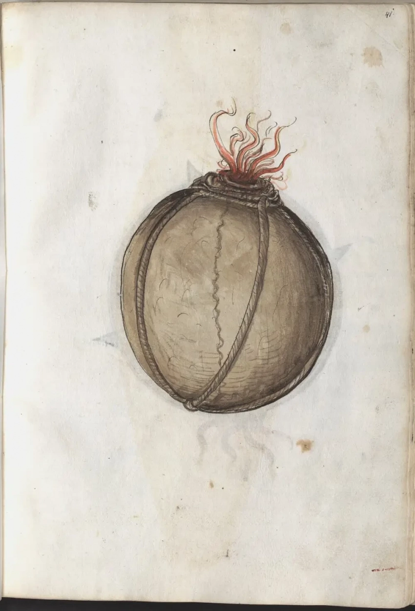 Просто фитильная бомба. Интересно, что в Корее до сих пор считают, что первым такую бомбу придумал их флотоводец Ли Сун Син. Очень может быть, кстати. Но вот в мире он был не первым явно!