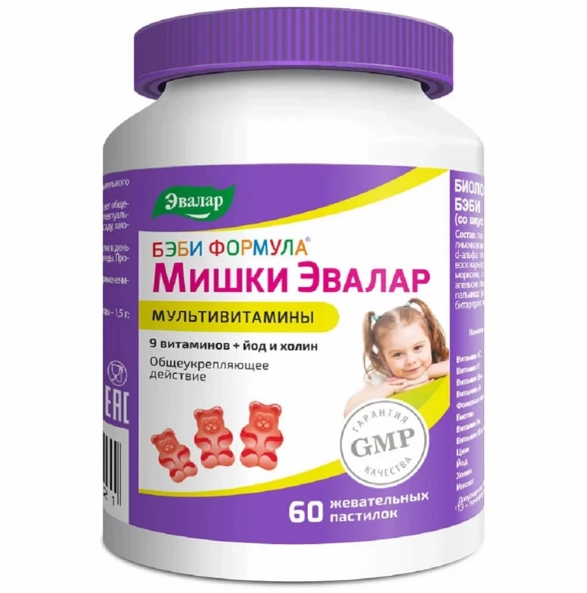 Топ БАДы для здоровья — это не только про взрослых. Мармеладные пастилки БЭБИ ФОРМУЛА Мишки Мультивитамины от «Эвалар» доказывают: забота о детском иммунитете, интеллекте и концентрации может быть вкусной, эффективной и безопасной. Девять витаминов в комбинации с цинком, йодом и холином поддерживают память и внимание, укрепляют иммунную защиту, особенно в периоды активного роста или адаптации к школе. Приятный вкус, отсутствие глютена, красителей и ГМО делают этот продукт разумной альтернативой импортным аналогам. Качество подтверждено GMP и российским Знаком качества «Лучшее — детям».